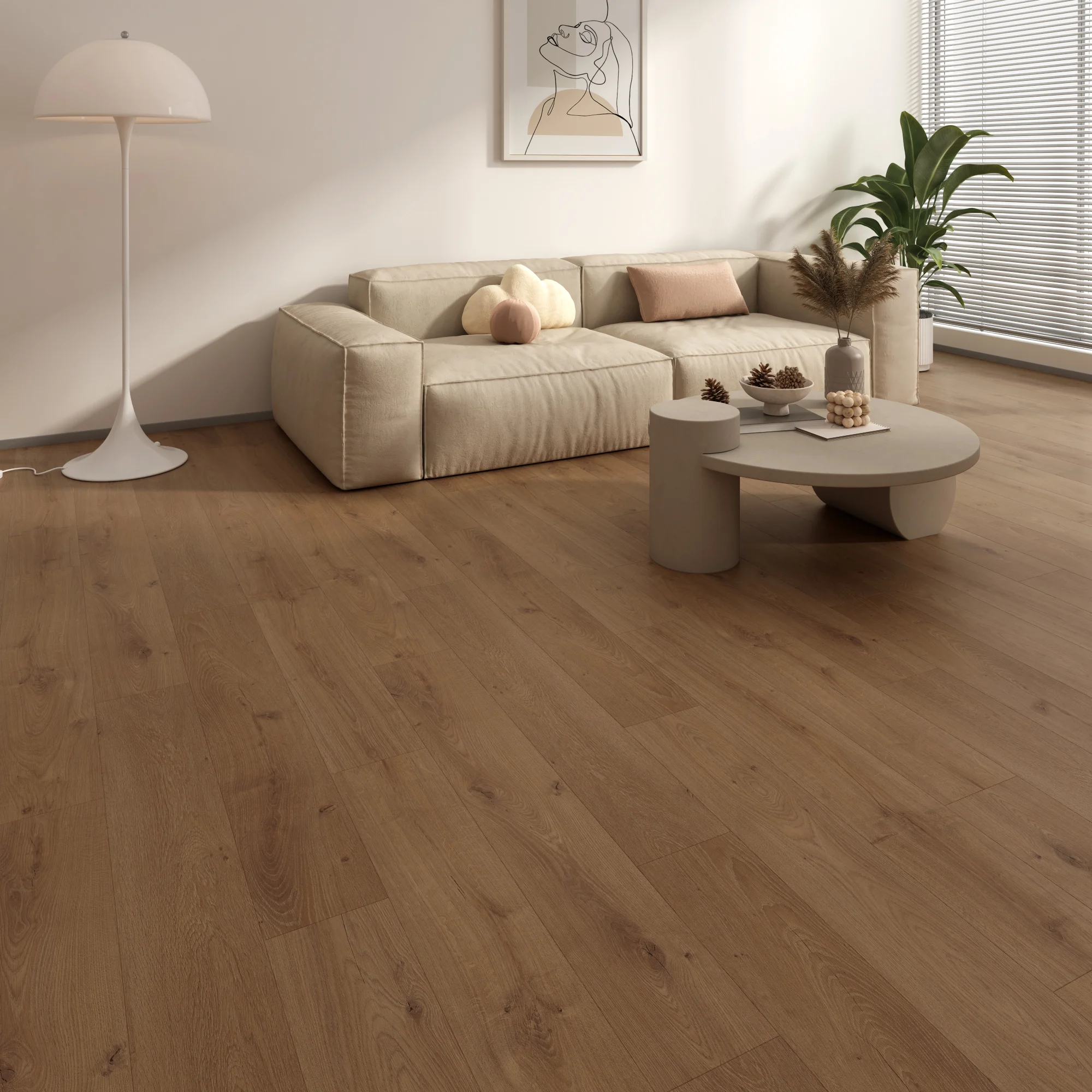 Indulge in the subtle elegance of our Bliss 4v collection. These laminate planks feature a subtle, painted V-groove along the edges, adding a touch of depth and dimension to your floors. Perfect for creating a sophisticated and inviting atmosphere in any living space.