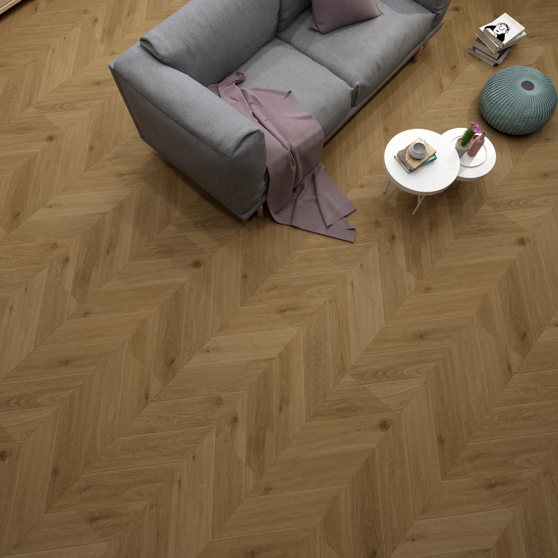 Make a statement with the bold, geometric pattern of our chevron collection. Featuring planks that meet at precise points to create continuous V-shapes, these floors offer a touch of modern flair. Perfect for creating a dynamic and eye-catching focal point in any room.